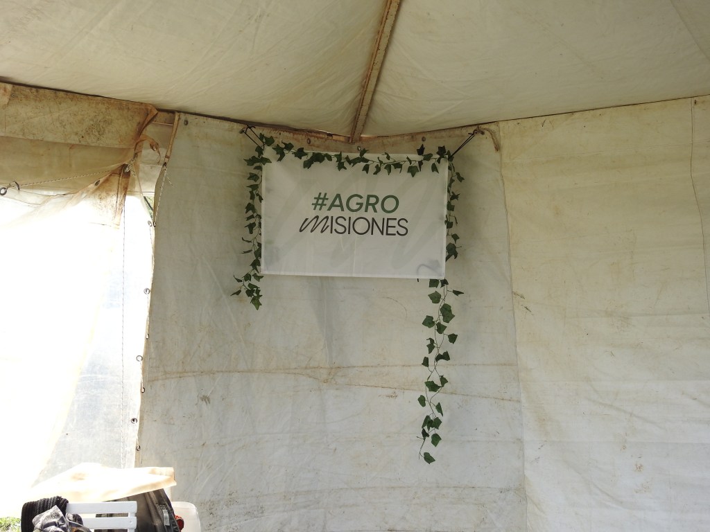 Entre estas demostraciones de tecnología, alimento balanceado y olor a campo un pequeño pispeo me hizo ver una carpa que a lo lejos parecía blanca, pero mientras más te acercabas se teñía de un marrón terroso. Había encontrado al Ministerio del Agro y la Producción de Misiones, la primera muestra de presencia del Estado provincial en el lugar, más allá de la policía.
